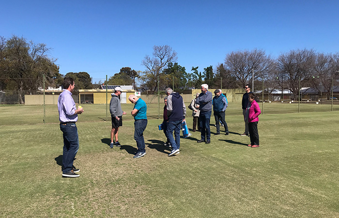 Prior to lunch, the group were treated to a presentation from Reade Park Lawn Tennis Club green-keepers, James Gregory and Brendan Fisher, before taking the group on a tour of the grounds, showing off the 14 grass courts and the maintenance facilities and equipment.
