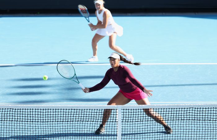January 16: Jaimee Fourlis (AUS) and Petra Hule (AUS) during Round 1 Doubles on Court 6 at the Australian Open at Melbourne Park on Thursday, January 16, 2025. Photo by TENNIS AUSTRALIA/ MORGAN HANCOCK
