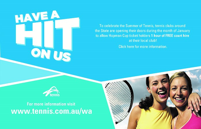 To celebrate the Summer of Tennis, tennis clubs around the State are opening their doors during the month of January to allow Hopman Cup Ticket holders 1 hour of FREE court hire at their local club!