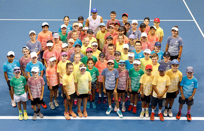 Super 10s National Camp participants, including WA’s Matthew Zatella, Gerard Hadianto, Thomas McKenzie, Nemanja Savic, Amy Findlay, Abbie Millis and Lily Edgar, were all smiles when invited for a photo opportunity with Rafael Nadal.
