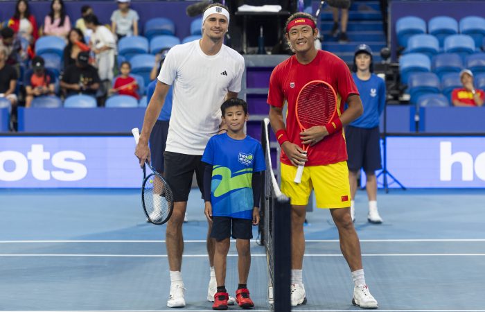 December 30: Alexander Zverev (GER) and Zhang Zhizhen (CHN) at RAC Arena in Perth on Monday, December 30, 2024. Photo by TENNIS AUSTRALIA/ MATT JELONEK