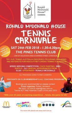 All proceeds from Tennis Carnivale will go to Ronald McDonald House Canberra