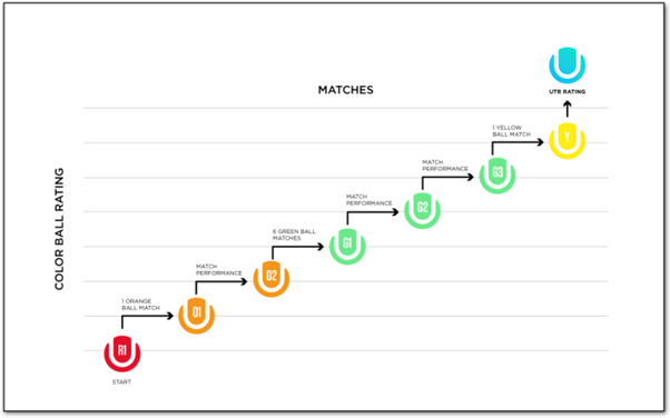 The ratings are a guide for parents, coaches and clubs to provide level-based play opportunities for players, encouraging players to develop and progress seamlessly to yellow ball competition where they can earn a yellow ball UTR Rating.
