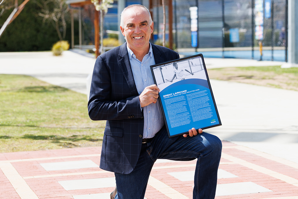 Brent Larkham has become the 15th person to be inducted into the Tennis ACT Walk of Fame.