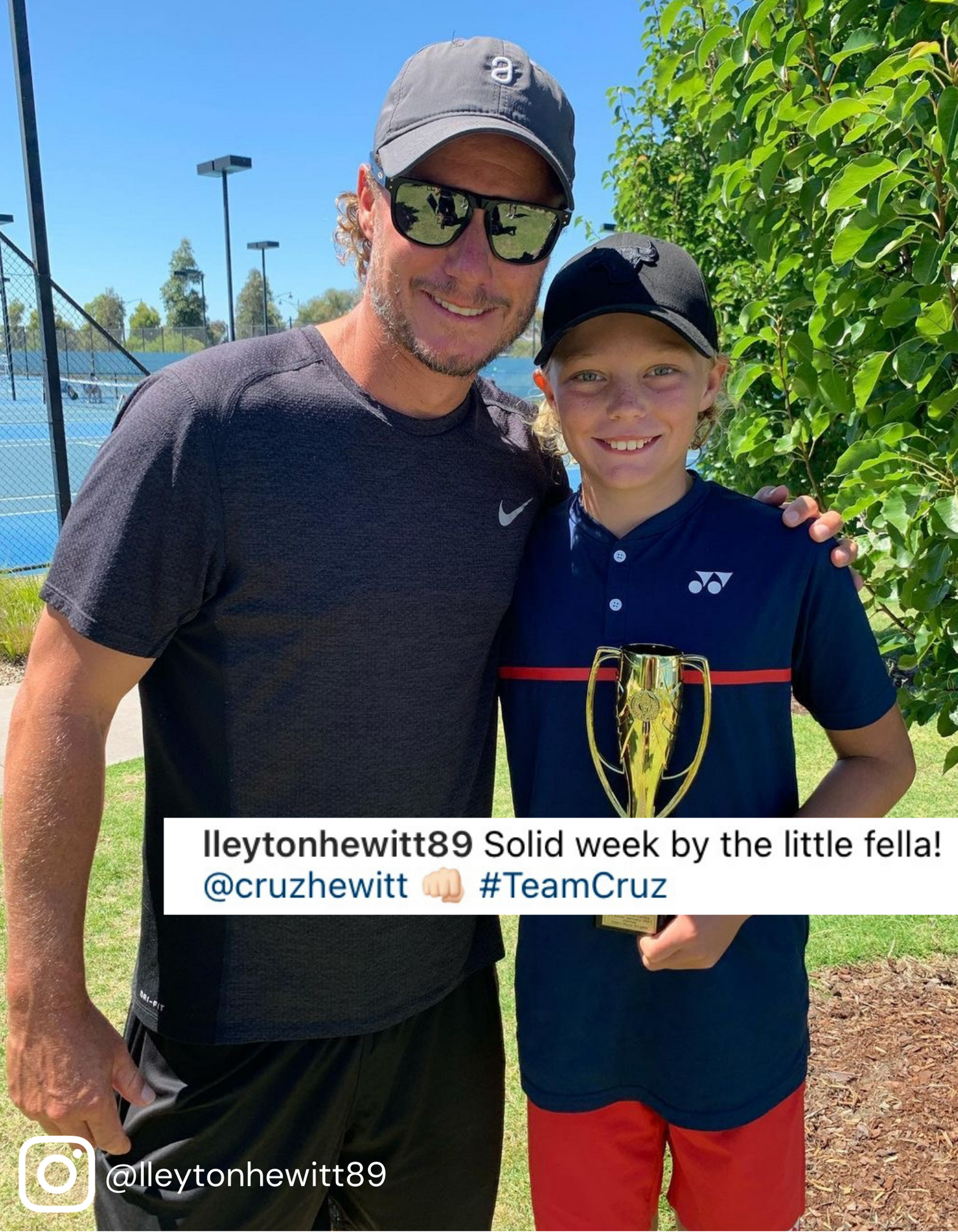 Australian Davis Cup captain Lleyton Hewitt has been on father duties, supporting son Cruz in a junior tournament: