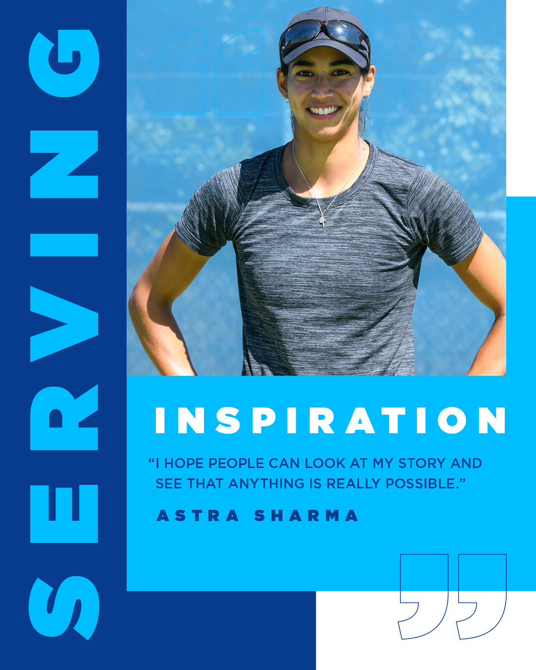 I hope people can look at my story and see that anything is really possible. I was never the atypical tennis player growing up, I didn't hit a lot of the criteria that you see a lot of professional players hit. But I worked really hard and stuck to what I thought I could do. I was a late bloomer it panned out. If someone gets told that they're not good enough or they'll never make it, I hope I can inspire them that maybe they can.