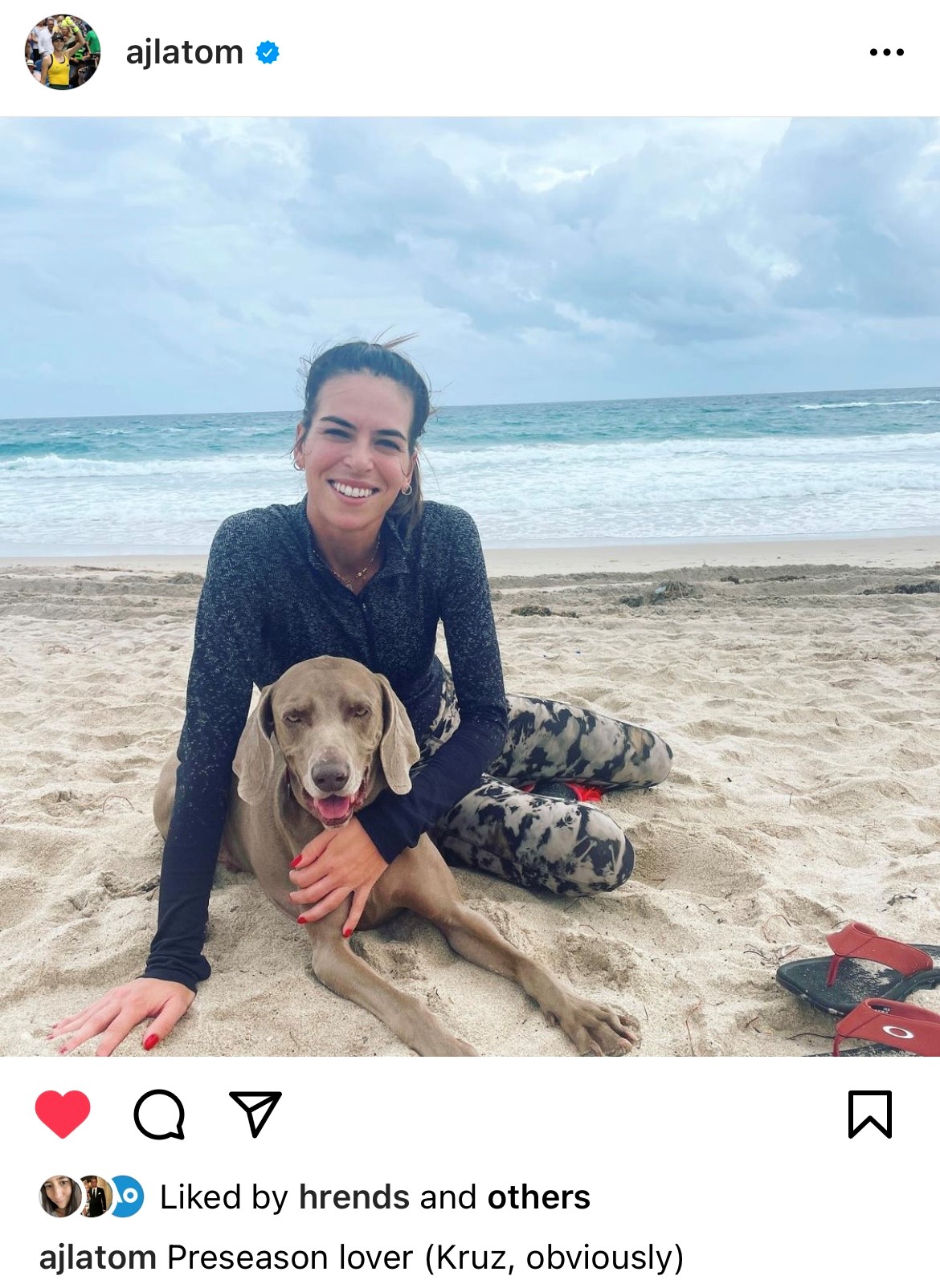 Ajla Tomljanovic has an adorable four-legged companion keeping her spirits high during preseason training: