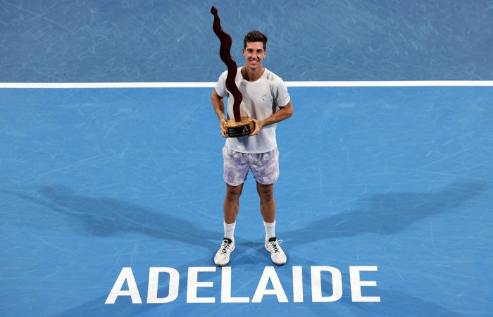 Kokkinakis won his maiden ATP title in his home city of Adelaide tonight, after an extraordinary contest with Frenchman Arthur Rinderknech.
