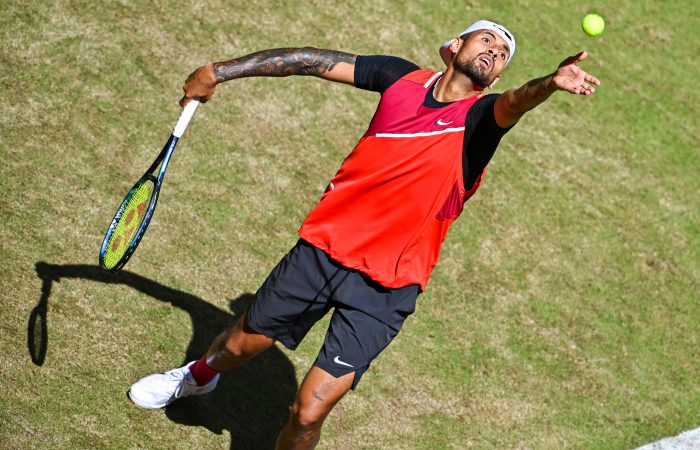 Nick Kyrgios has set-up a second-round showdown with world No.6 Stefanos Tsitsipas at an ATP 500 tournament in Halle.