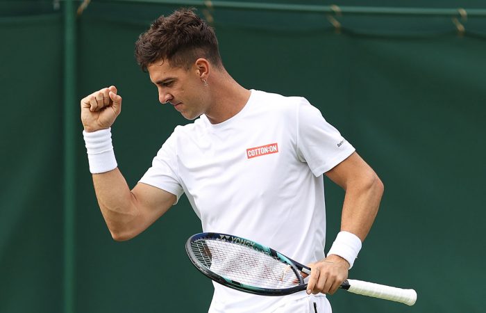 The sun is shining brightly for Thanasi Kokkinakis on a rain interrupted day one of Wimbledon 2022.