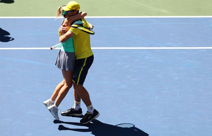 After a double fault, Peers rebounded with a winning overhead to put the Aussies ahead 5-4, and later played another return winner for an 8-6 lead.