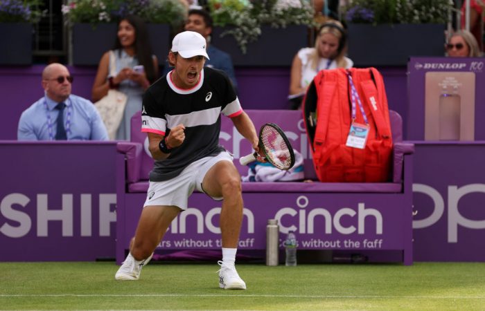 World No.76 Thompson continued his impressive grass-court form to score a 6-4 6-4 victory.