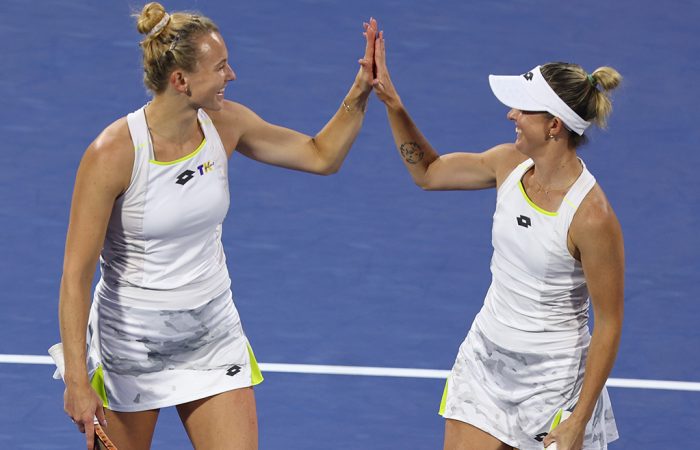 [3] Storm Hunter (AUS)/Katerina Siniakova (CZE) d Marie Bouzkova (CZE)/Sara Sorribes Tormo (ESP) 6-3 6-0