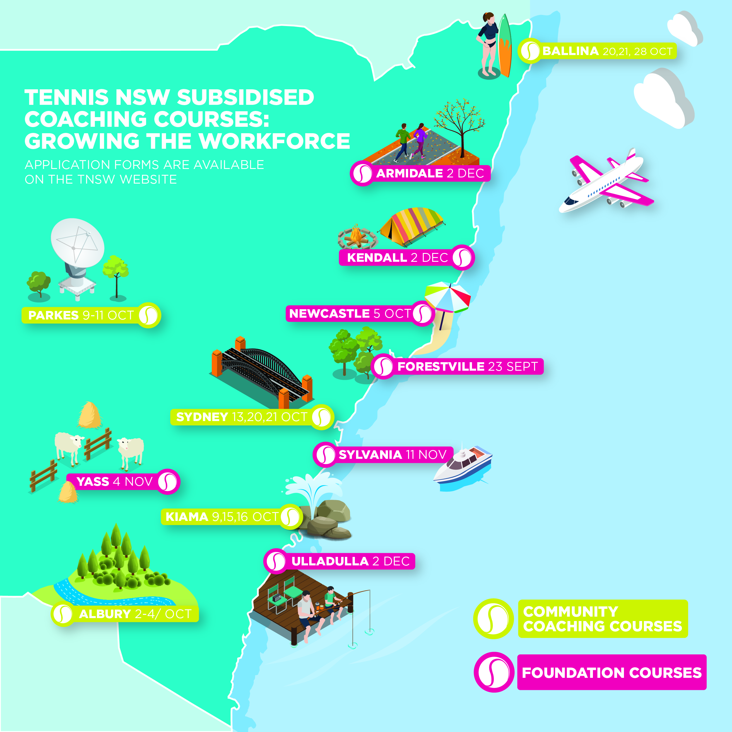 Tennis NSW are committed to growing the coaching workforce across NSW. Over the next three months we are proud to be subsidising a variety of Tennis Australia coaching courses to encourage the next generation of coaches to have a taste of formal education.