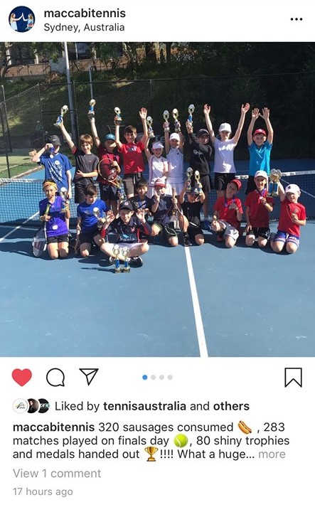 1.@maccabitennis – a NSW tennis club who share a lot of content from their own club, as well as great images of tennis champions who are doing amazing things around the world. All of their details are in their bio which makes it nice and easy for people to find/contact them if they need!