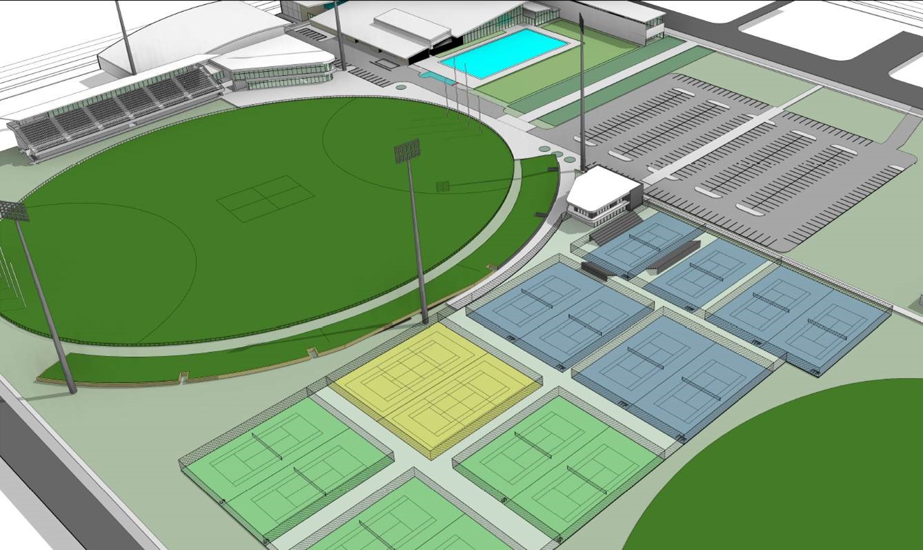 It will include eight ITF championship hard courts, seven additional community courts, two multi-purpose netball courts, a multi-purpose amenity building with pro-shop, change facilities, public toilets, a function space, multi-purpose rooms, spectator areas and storerooms for tennis, netball, and other community users. The project will also reconfigure the adjacent Geoff Lawson Oval to a full-size cricket-AFL field.