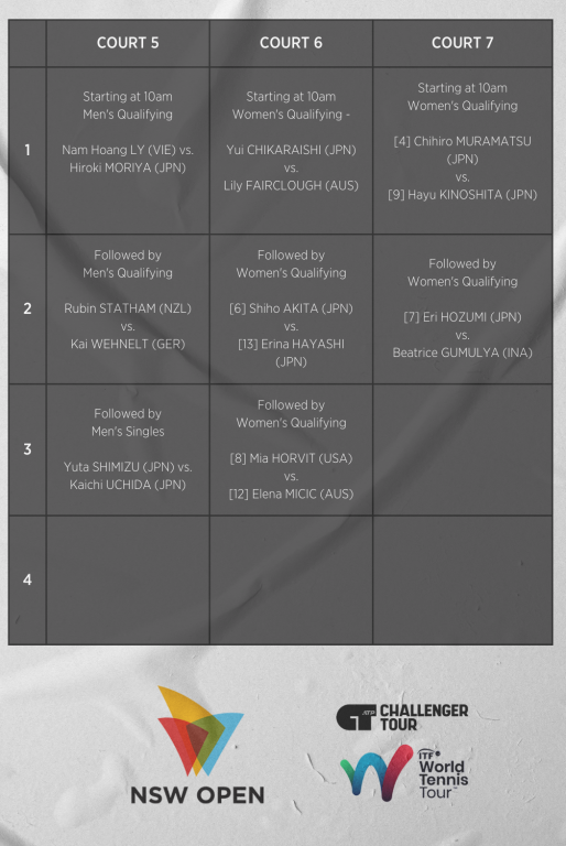 28 qualifying matches were completed on Day 1 at the NSW Open at Sydney Olympic Park.
