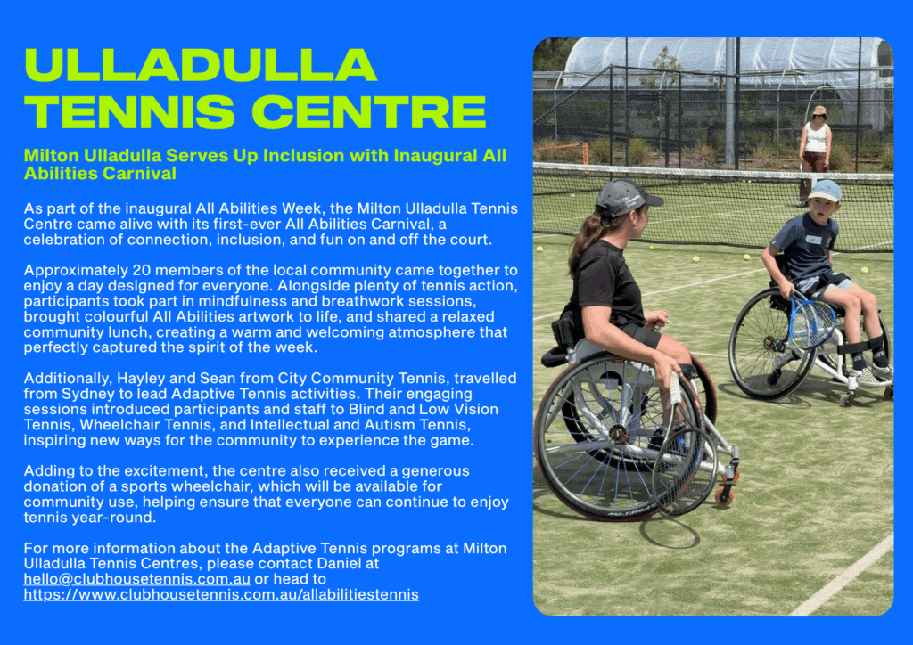 Across NSW, clubs including Ulladulla Tennis Centre, Collaroy Tennis Club, City Community Tennis and Voyager Tennis Willoughby hosted events showcasing their inclusive programs and celebrating the spirit of accessible tennis. Keep reading to discover how venues across the state came together to make All Abilities Week a hit!