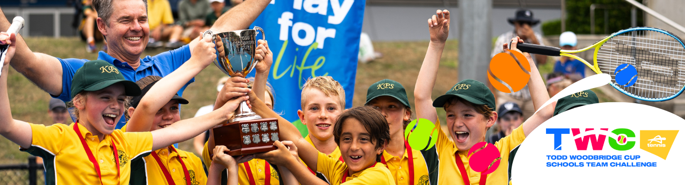 The Todd Woodbridge Cup is a primary school competition for stage 2 (years 3 and 4) and stage 3 (years 5 and 6) that uses modified equipment, numeric scoring and mixed gender teams.