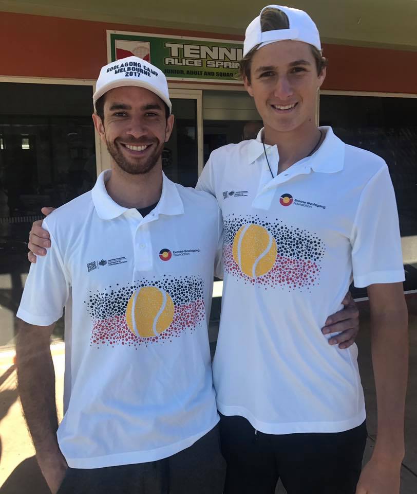 ![]() (Jesse Russell, pictured on the right, working as a Coach for the Evonne Goolagong camp at Tennis Alice Springs) |