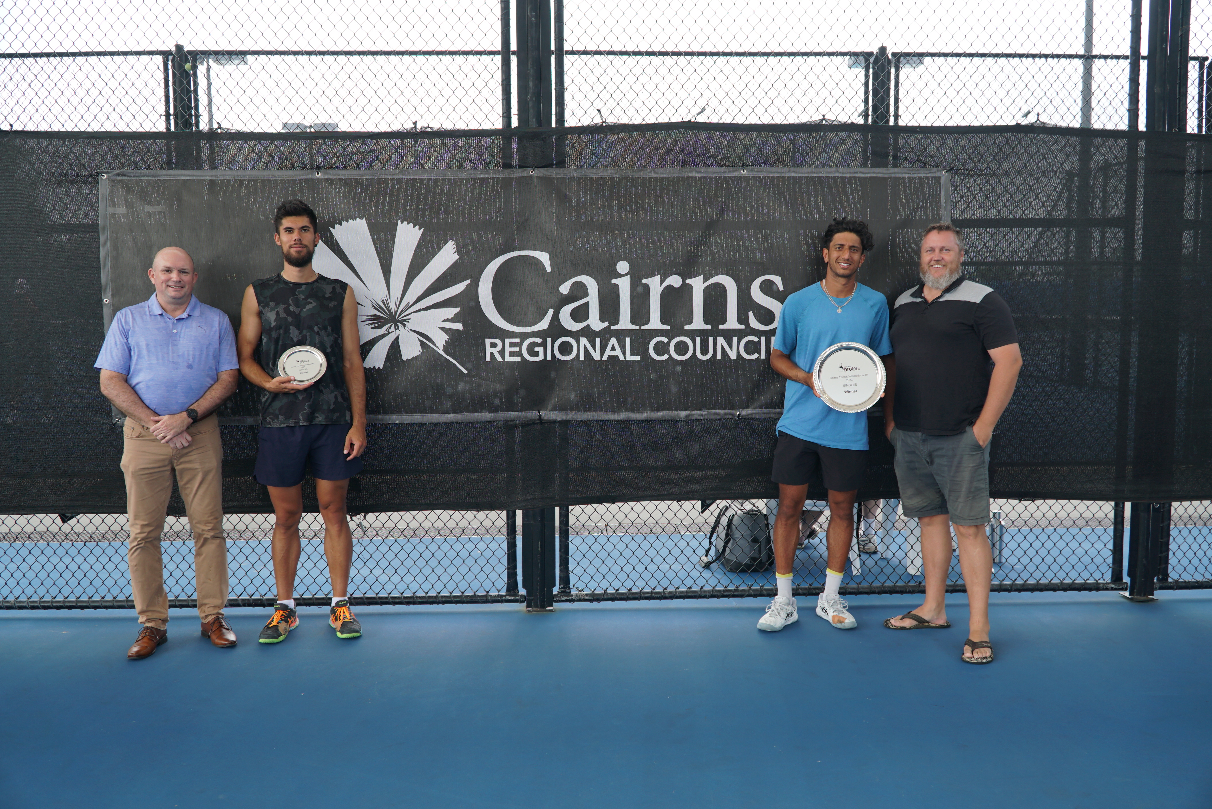 | Cairns International Tennis Centre Representative Paul Horn, Jeremy Beale, Ajeet Rai and Cairns Regional Council Representative Cr Brett Olds | Lizette Cabrera and Destanee Aiava |