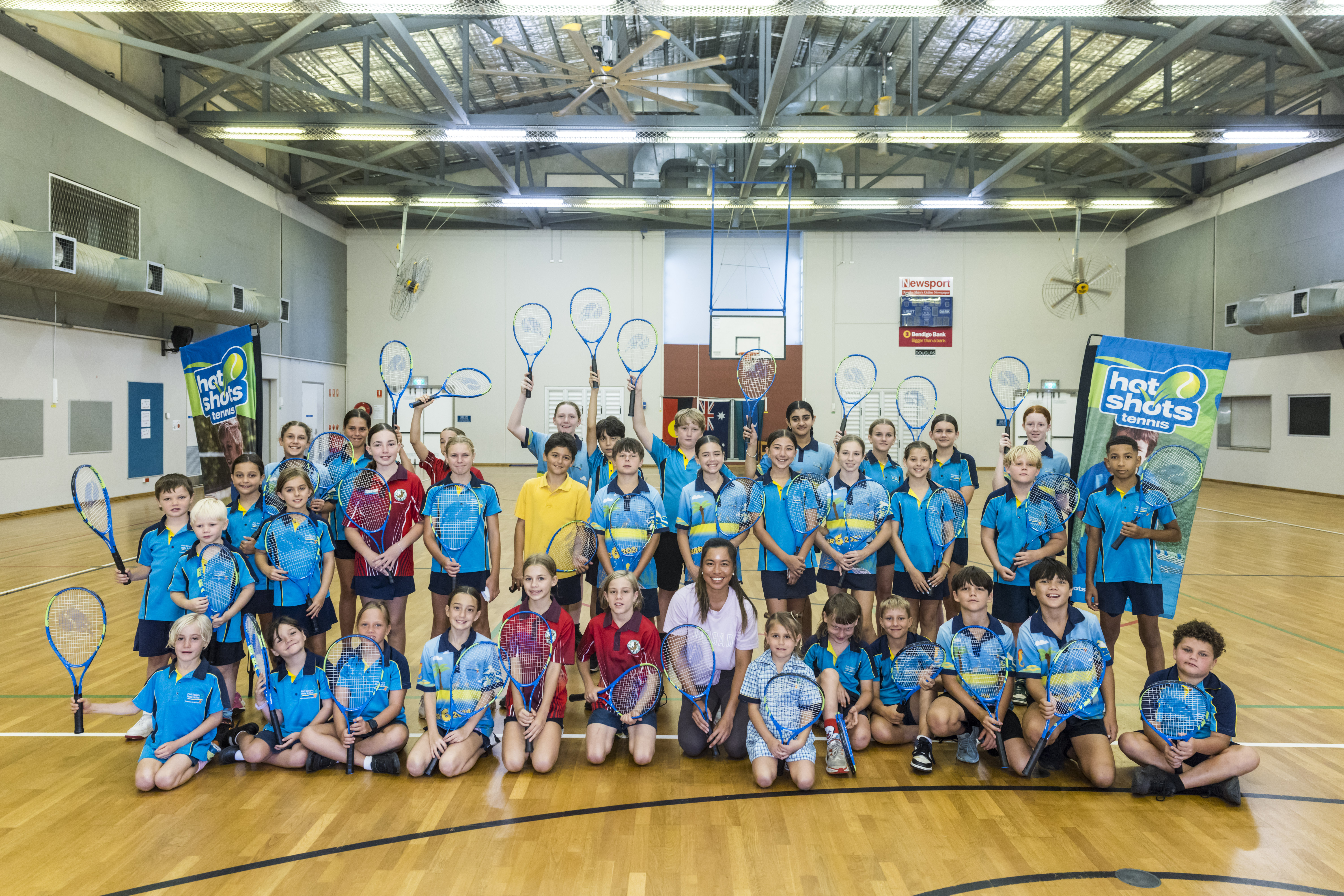 The Hot Shots Tennis Racquet Roadshow has returned to Queensland for another year, with 250 students receiving brand new racquets from Queensland tennis legend Lizette Cabrera.