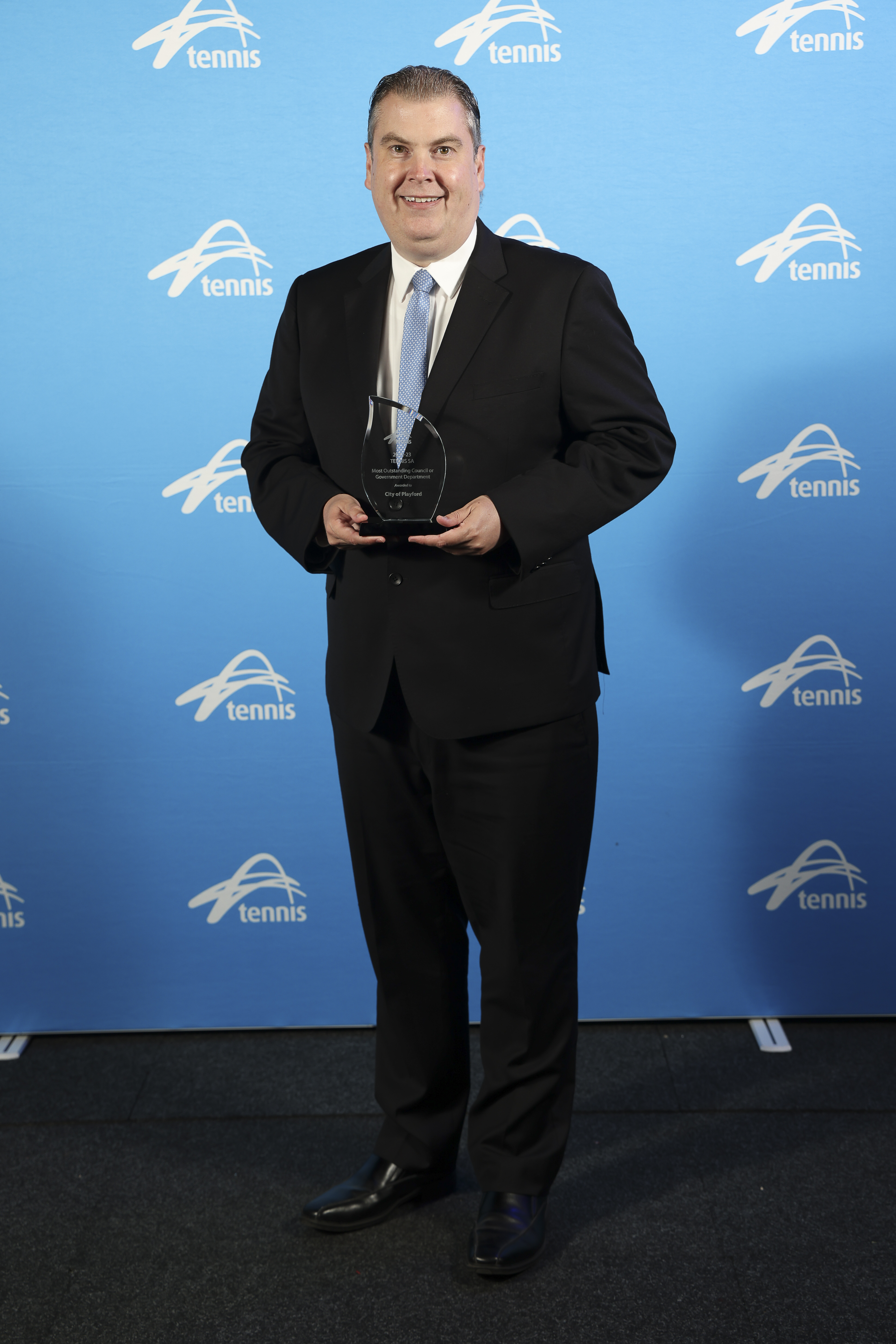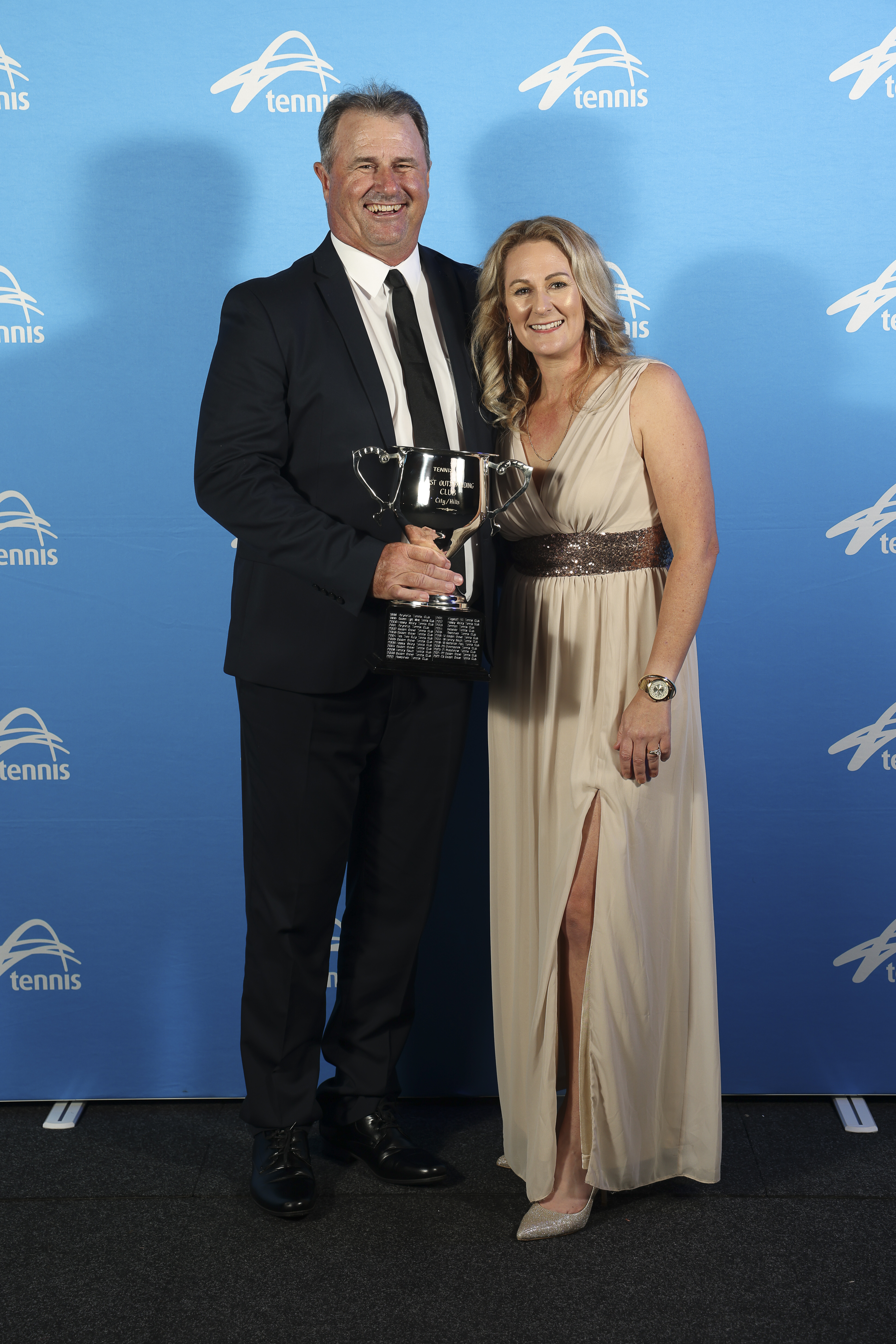 Golden Grove Tennis Club President Craig Mousley was excited to accept the award on behalf of the club and congratulate club stalwart Kimberly Absalom.
