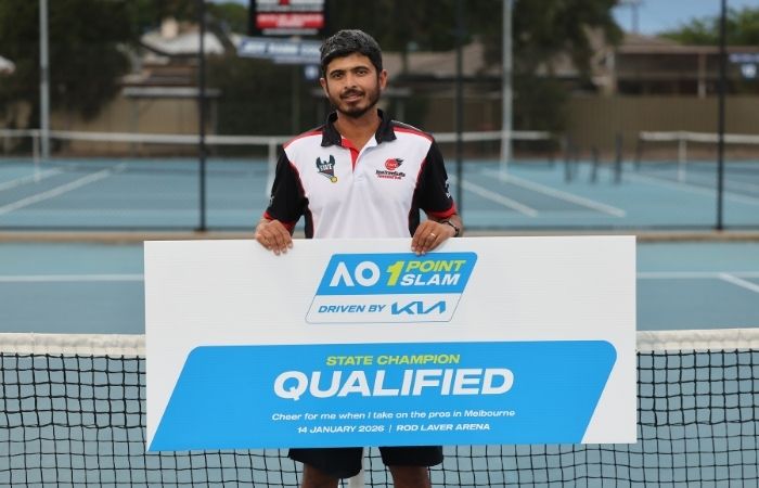 Ashwin Vijayaragavan from Tea Tree Gully Tennis Club has been crowned the SA State Champion earning himself direct entry into the main draw of the AO 1 Point Slam at Melbourne Park and a chance to take home $1 million in prize money and a Kia EV3.