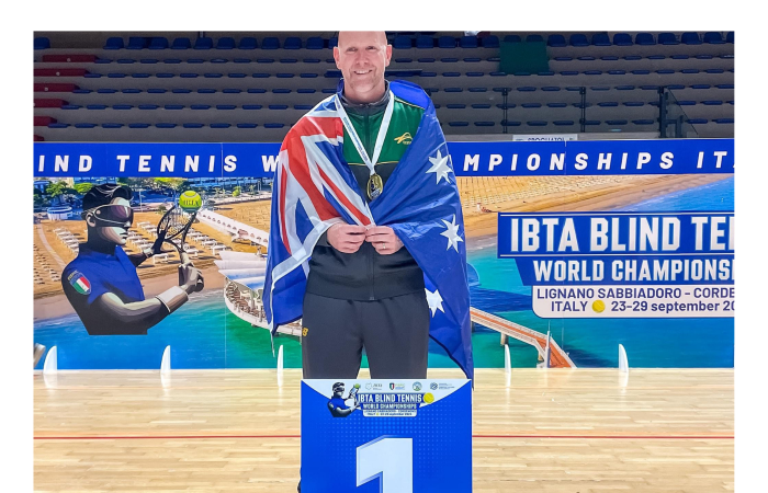 Congratulations to Tasmanian Ross Patterson who recently achieved great success at the IBTA Blind and Low Vision Tennis World Championships in Italy. Patterson won Gold in the B4 Men’s Singles and Gold in the Men’s Open Doubles with Michael Leigh (NSW).
