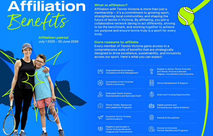 Join Tennis Victoria in creating safe, inclusive and thriving Victorian tennis communities.