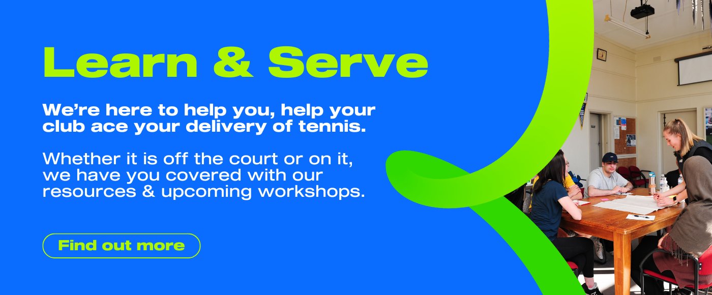 - Access to Learn & Serve – resources which have been designed to assist in your delivery and development of tennis in Victoria