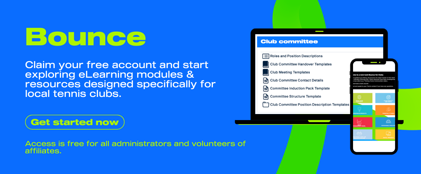 Claim your free account and start exploring eLearning modules & resources designed specifically for local tennis clubs.