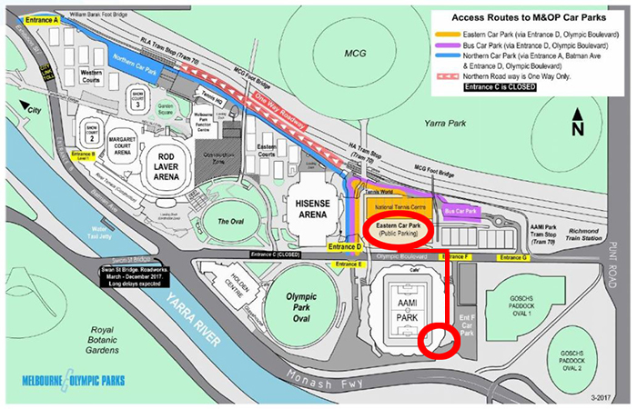 Parking map below: Park in the Eastern Car Park (enter through Entrance D on Olympic Blvd) and then walk alongside AAMI Park to entrance for the AGM.