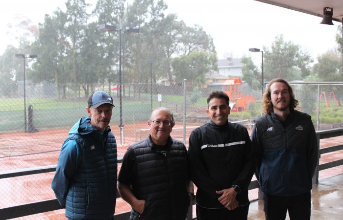 Tennis Victoria Coach Leader Jon Watson and Tennis Victoria Club Development Officer Kyle McMullan with President Joe Santamaria and Head Coach Peter Caruana – Nunawading Tennis Club