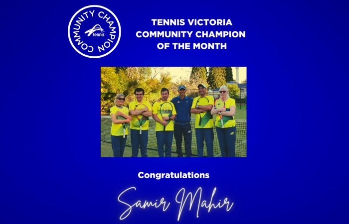 Samir Mahir is our Community Champion of the Month for May. Samir has been pivotal in the success of the Blind and Low Vision tennis program, volunteering his time as a coach to assist the players and help them to develop their skills.
