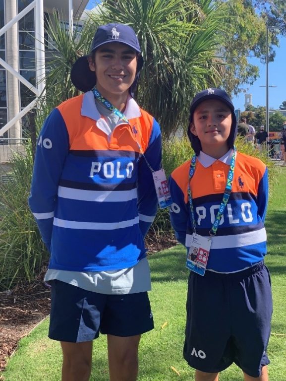 Throughout the Australian Open, Lewis is a ball kid and pictured here with Rhys Bergman in 2022, the two will complete their second AO in 2023.