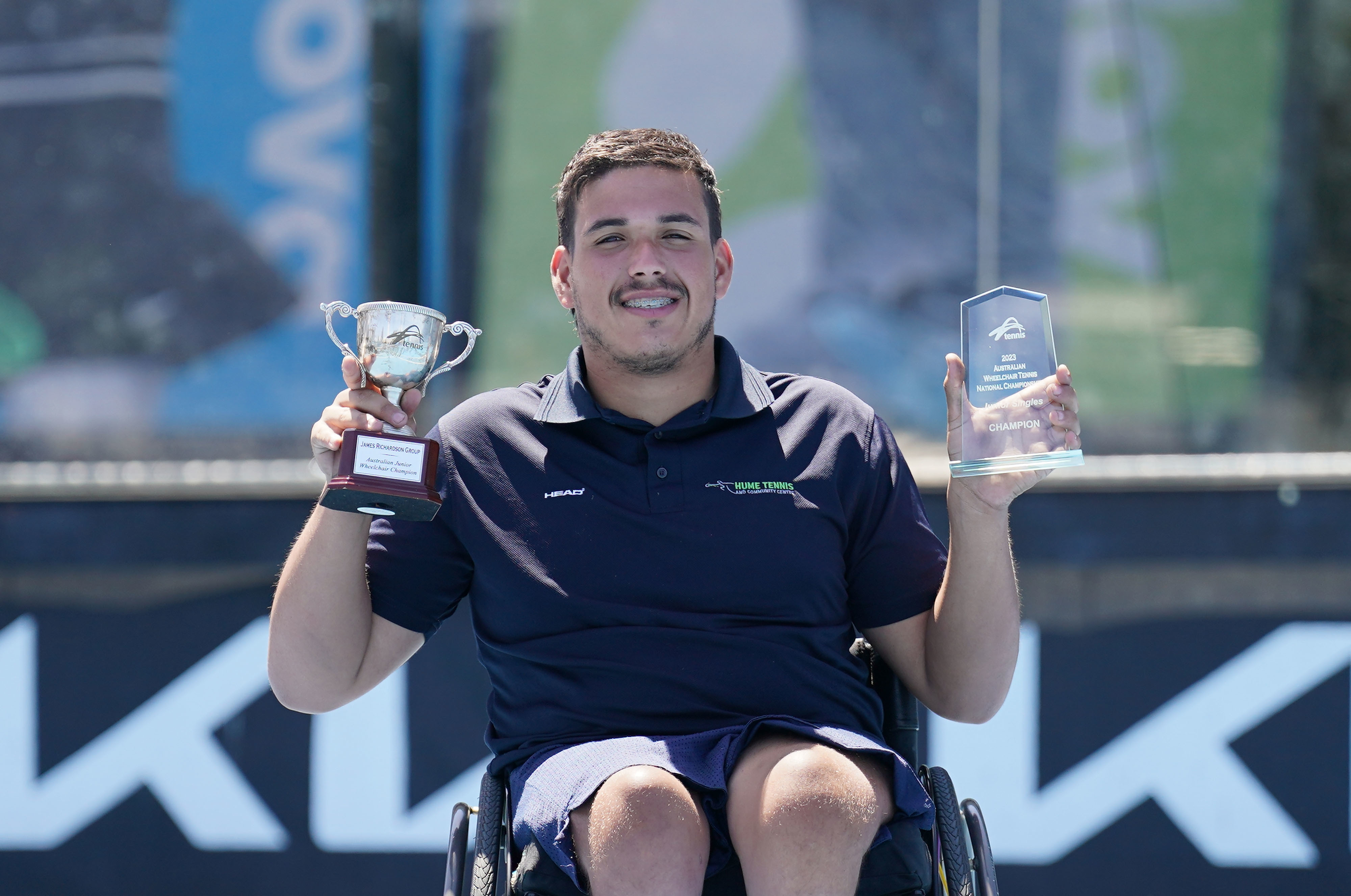 Yassin Hill. Presentations after the 2023 Australian National Wheelchair Tennis Championships at Melbourne Park on Sunday, November 12, 2023. Photo by TENNIS AUSTRALIA/ SCOTT BARBOUR