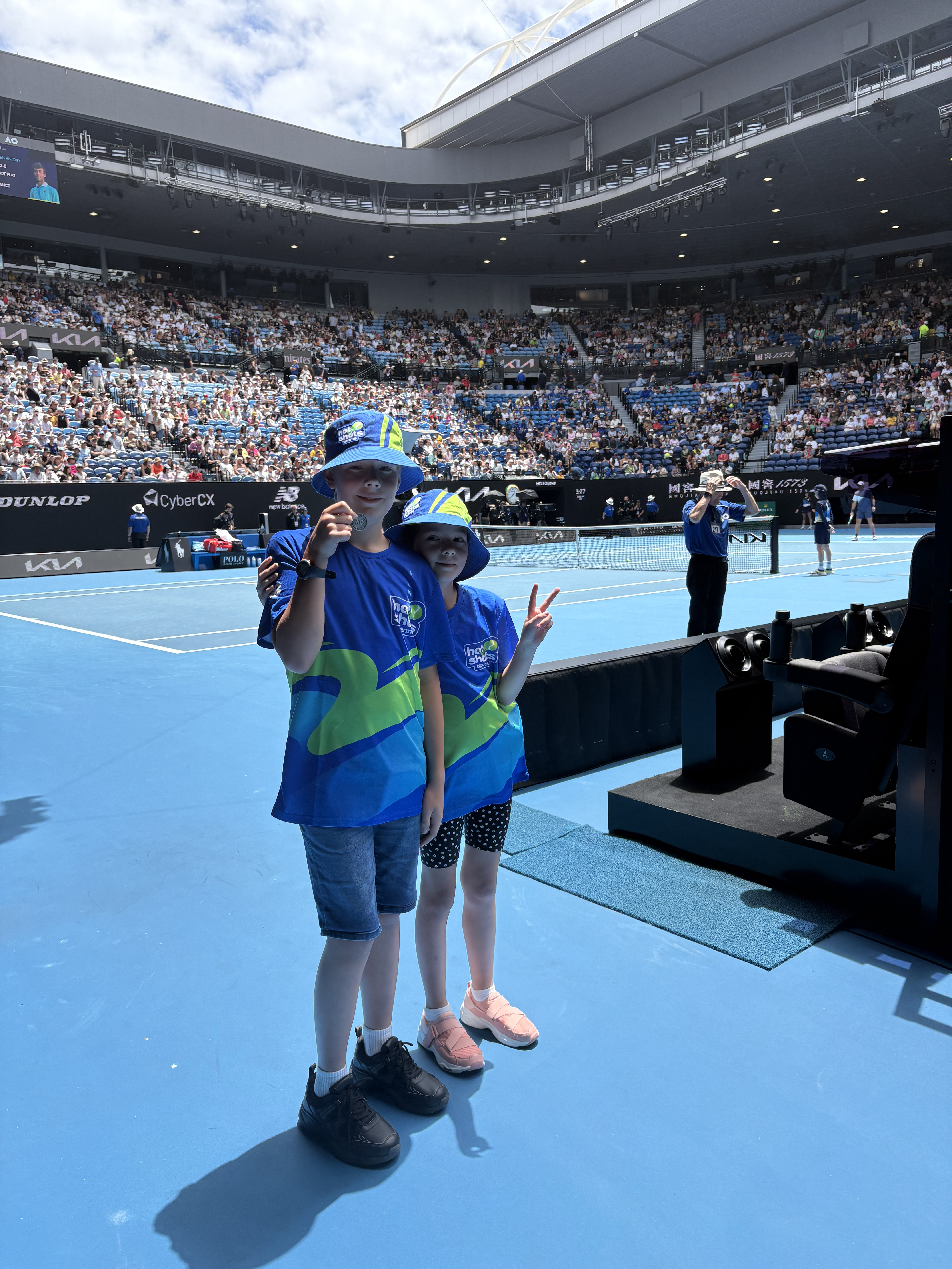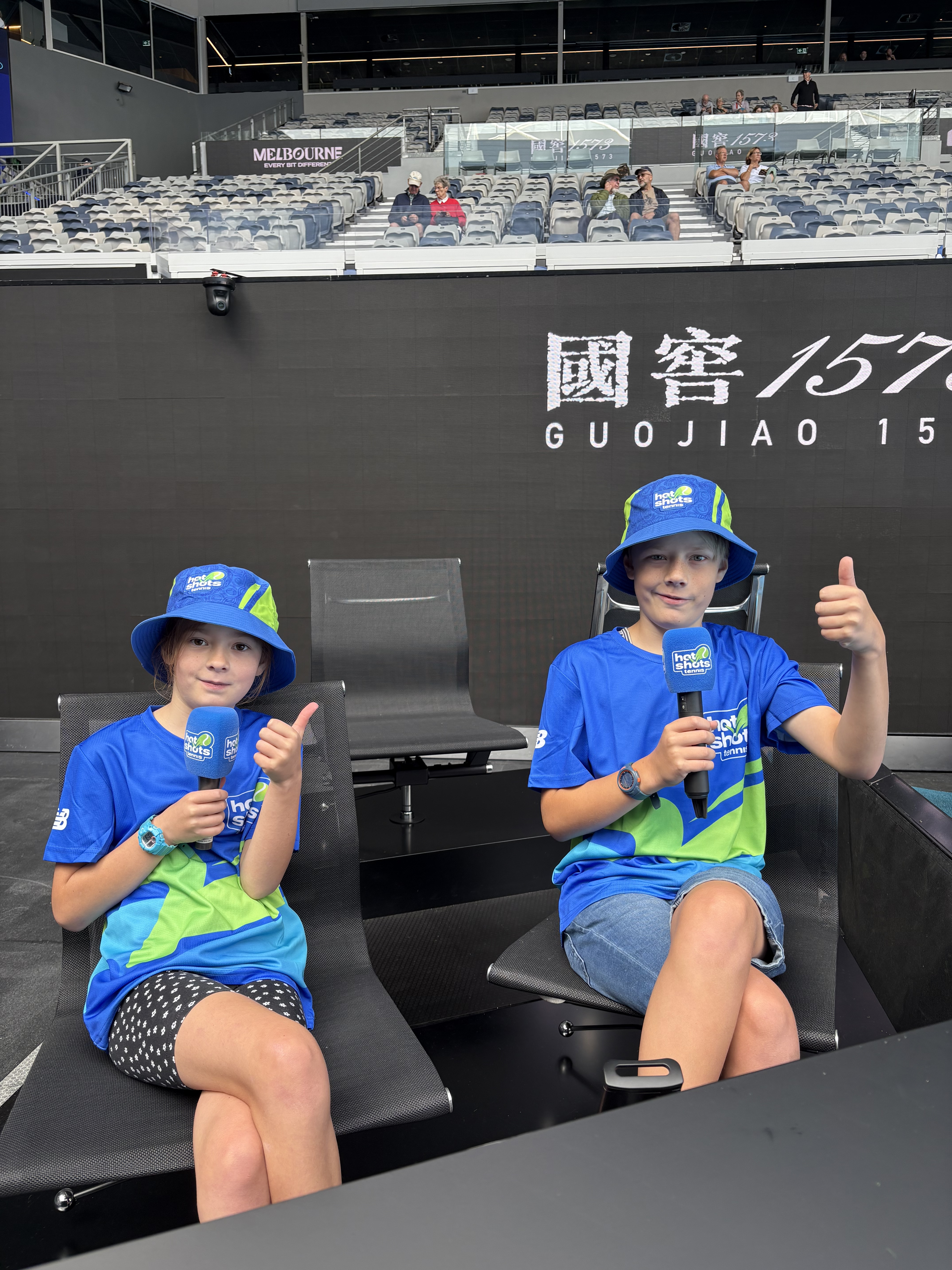 This year’s Hot Shots Day featured a special twist with junior reporters Jimmy (9) and Mary (7) from Shepparton joining the action. The siblings earned their spot through an inspiring journey — Jimmy had written a persuasive letter to Tennis HQ advocating for more Hot Shots clinics at his school, Bourchier Street Primary, which led to a stop at the school during the AO on the Road tour last year.