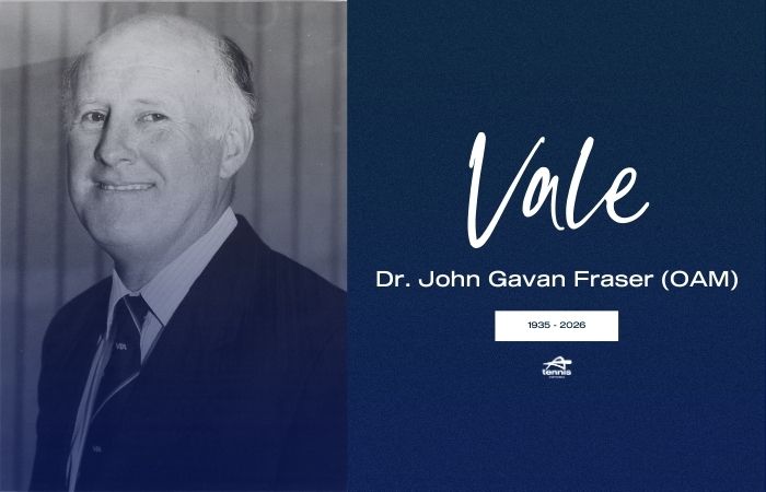 Tennis Victoria is deeply saddened by the passing of Dr John Gavan Fraser (OAM), former President of Tennis Victoria, former Vice President of Tennis Australia, a Tennis Australia and Tennis Victoria Life Member, and a distinguished figure in Victorian tennis – whose impact on our sport will be felt for generations.