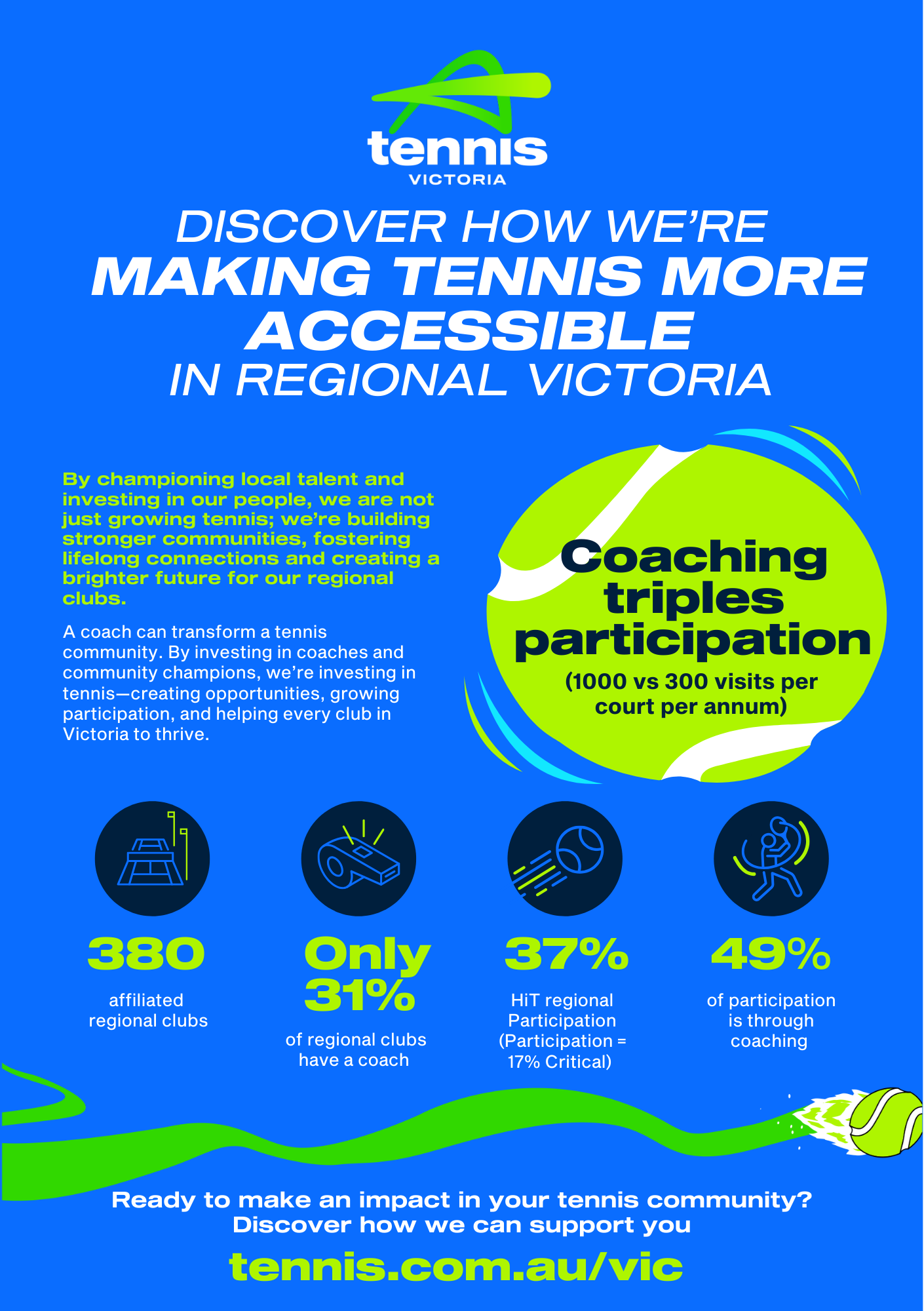 Together, we can make a lasting impact on tennis in regional Victoria.
