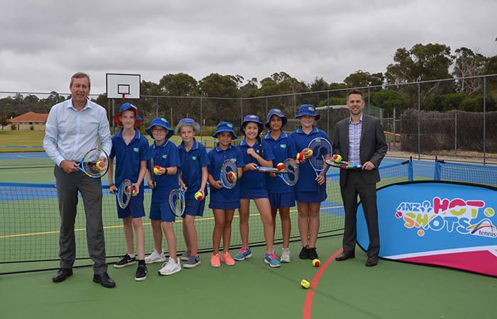 The opening of the courts were celebrated on Tuesday with Tennis West staff and Member for Baldivis, Mr Reece Whitby, attending the school to watch over 60 year five and six students enjoying ANZ Hot Shots tennis on the eight multi-purpose courts.