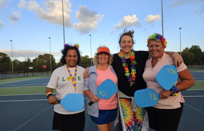 We started with social tennis and pickleball, with everyone dressed in their brightest attire. We then went into a 4 round trivia night – including spot prizes, random games and a pub choir-esque round of “the lion sleeps tonight.” Margi Pride, our local LGBTQIA+ not for profit organisation, had a representative attend and spoke to everyone about the Margi Pride goals and how to join if anyone was interested.