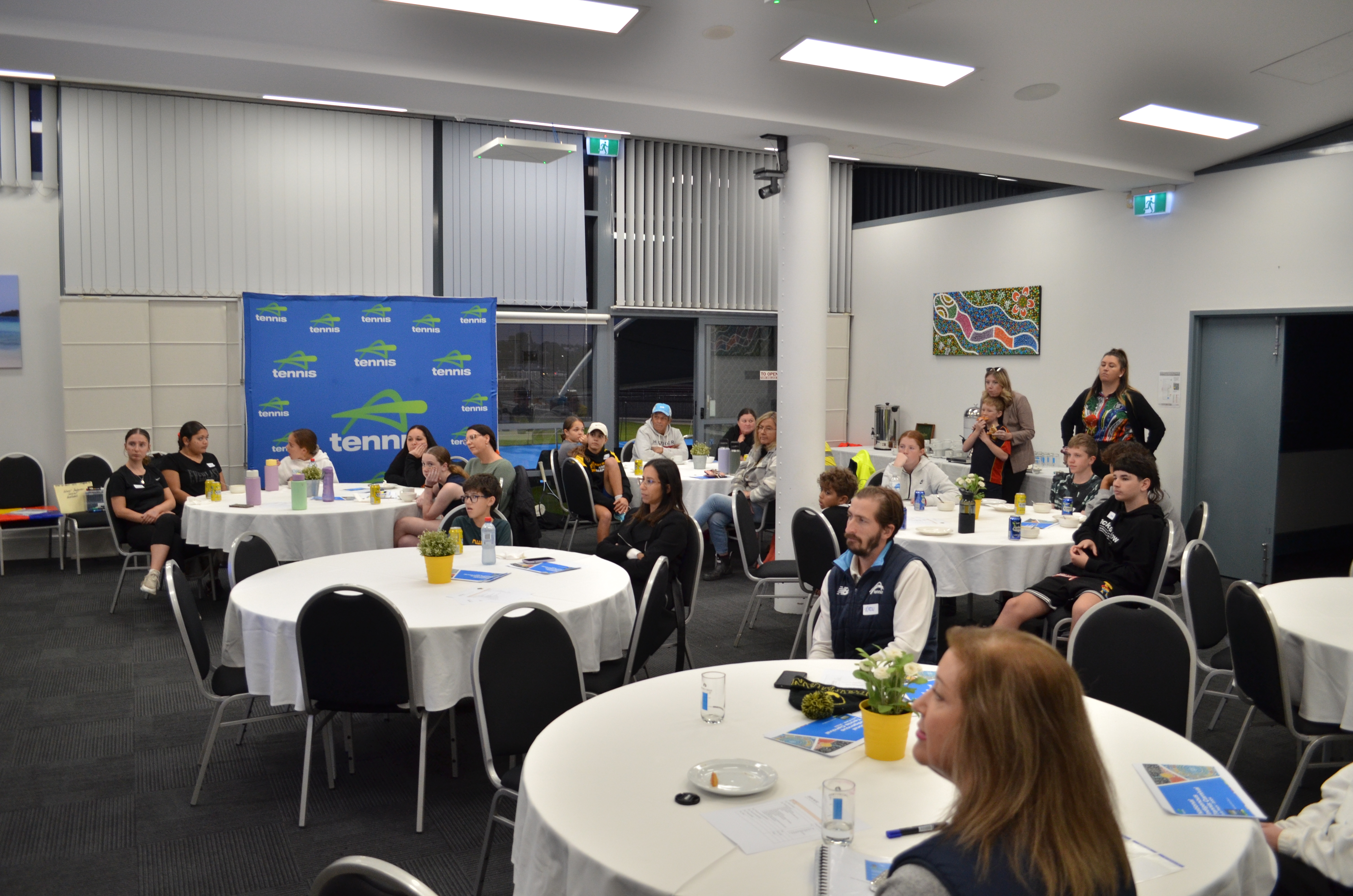 Last Thursday night, Tennis West held an information night and team dinner for the players, their families and staff. The team participated in on court activities with coach Radu Vaidean, joined an information session about NITC, and were presented with Team WA gear including hoodies and backpacks.